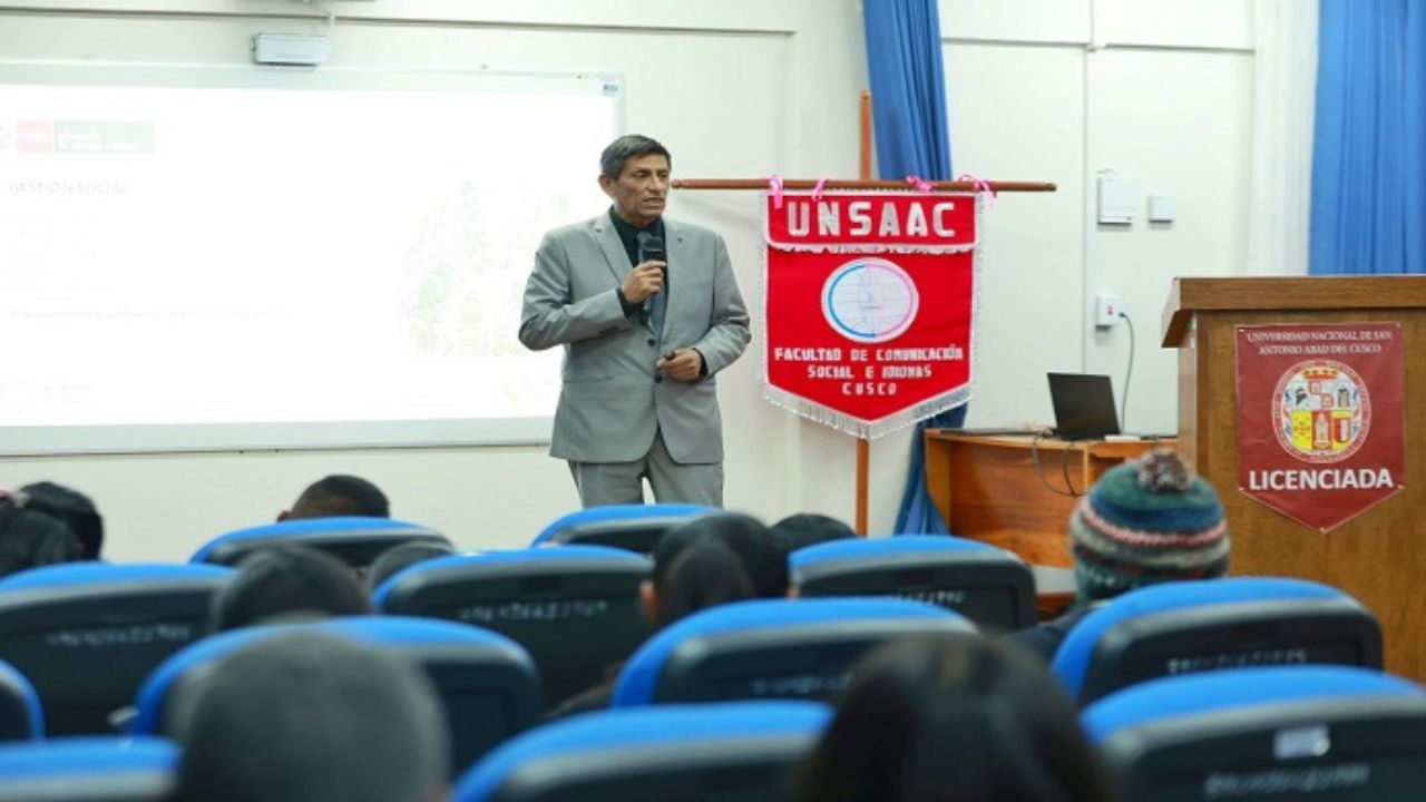 El Ministerio de Energía y Minas (MINEM), a través de su Oficina General de Gestión Social (OGGS), participó en el evento universitario “Comunicación para transformar: Herramientas desde la experiencia”, organizado por la Universidad Nacional de San Antonio Abad del Cusco (UNSAAC). En esta jornada, dirigida a estudiantes universitarios, se presentó la ponencia “Gestión Social y Comunicación”, donde se destacó la relevancia del diálogo como herramienta para prevenir conflictos, fomentar relaciones constructivas y promover el desarrollo sostenible.