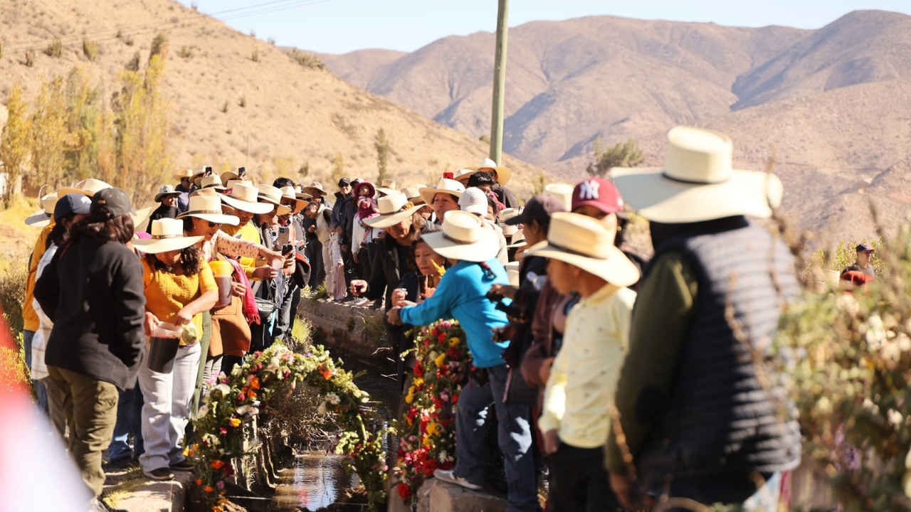 A través de arduas jornadas de trabajo comunal y ritos culturales como el “Pago al Agua”, los pobladores varones de la zona se movilizan para limpiar los canales que trasladan el agua desde las alturas del nevado Ampato, atravesando sectores como Huacta, Calcata, Tiopascana, Lechemayo, Curinta y Choclón, entre otros. De esta manera, contribuyen a garantizar la provisión hídrica para el desarrollo de sus actividades económicas, como la agricultura y la ganadería.