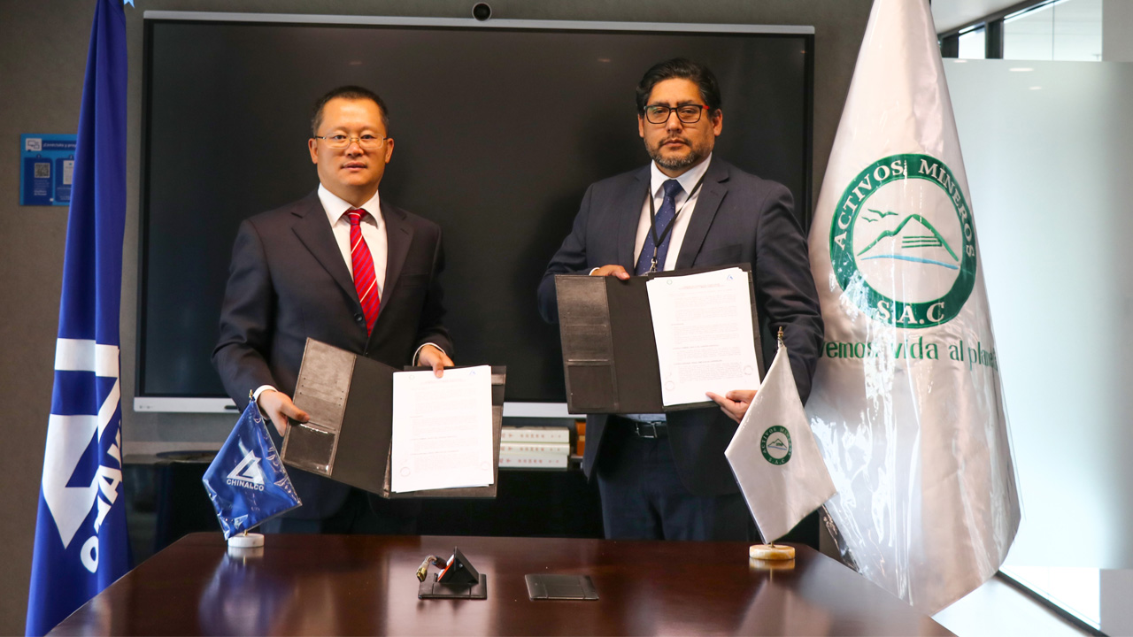 Activos Mineros S.A.C. (AMSAC) y Minera Chinalco Perú S.A. suscribieron un Convenio de Cooperación Técnica con el objetivo de fortalecer el intercambio de conocimientos y buenas prácticas en materia de cierre de minas, postcierre, monitoreo ambiental y gestión de pasivos ambientales mineros.