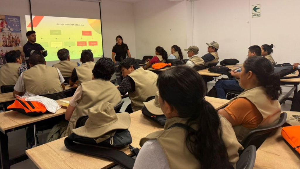 Las actividades combinaron sesiones teóricas con prácticas en campo, donde los participantes acompañaron la evaluación de la calidad de aire, agua y suelo en distintos puntos cercanos a la operación. Durante las jornadas, los asistentes realizaron la observación directa de la toma de muestras y participaron en un taller donde se explicaron los parámetros evaluados conforme a los estándares de calidad ambiental vigentes y se compartieron los avances de los proyectos locales.